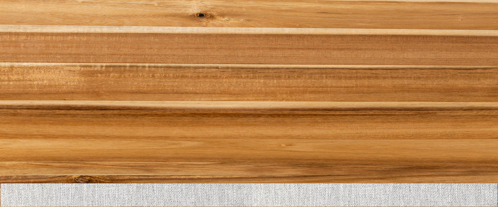 → Canadian Birch, Smoked Hickory, Aged Elm: Crafted of Hevea wood and engineered hardwood sourced from the forests of Malaysia.