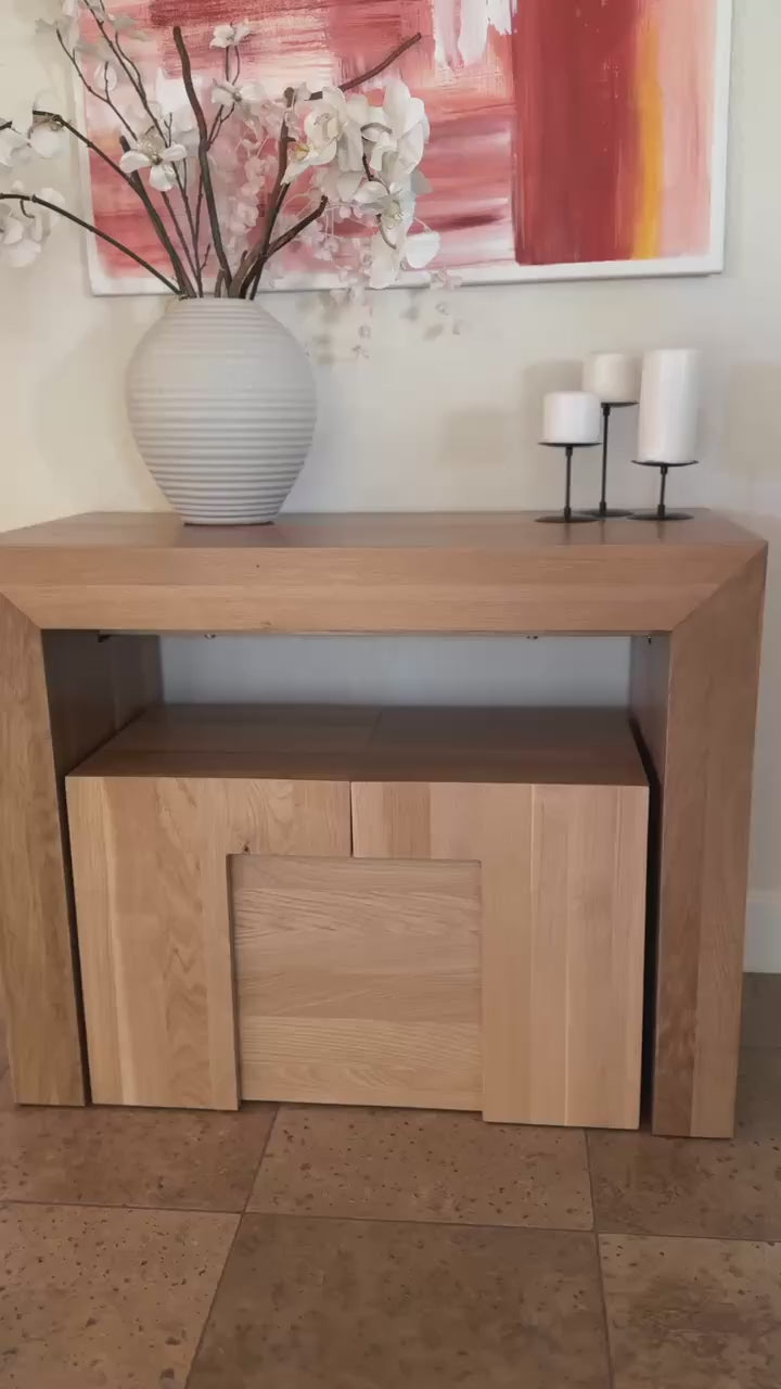 This wooden extendable dining table is unlike any other you have ever seen. Regain ultimate flexibility in your dining space with the versatile Transformer Table, which allows you to expand its size from as small as an entrance console all the way to a long banquet table for 12.